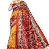 HONEY BABY Women’s Printed Bandhani Chiffon Saree, Yellow Red