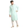 Manyavar Kurta Set for Men, Full Sleeves Mandarin Collar Ethnic Men’s Kurta Set for Engagement, Wedding, Party Blended Cotton Embroidery (Blue)