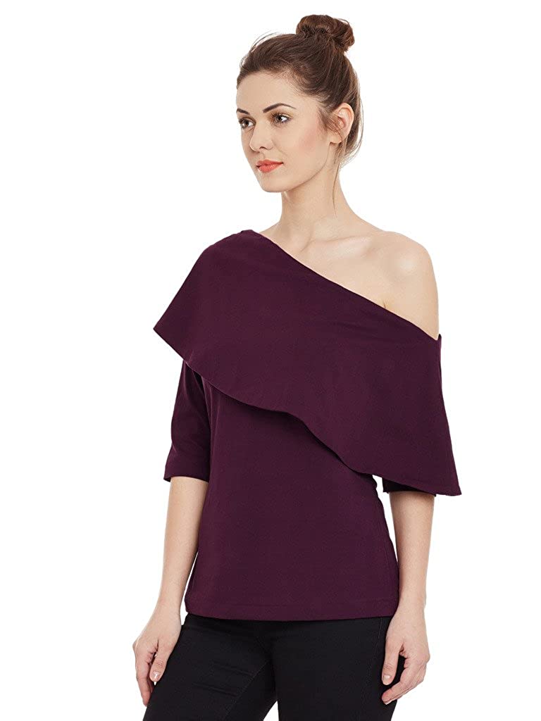 Miss Chase Women’s Black One Shoulder Half Sleeved Solid Layered Top