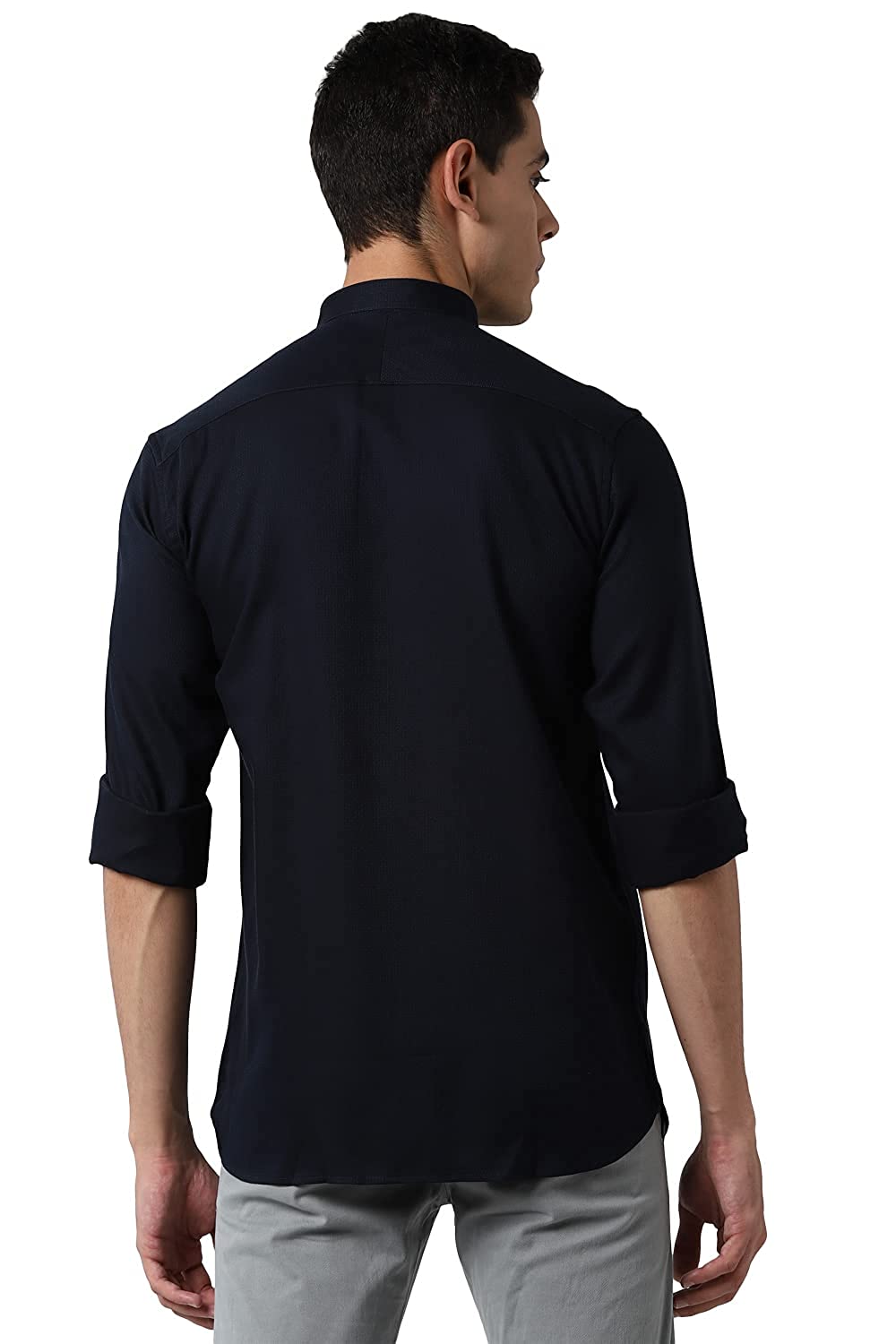 Let your style do the talking in this navy solid casual shirt from Peter England by Peter England.