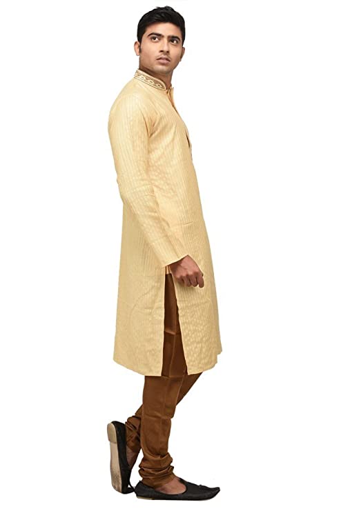 MANQ Men Fawn Woven Jaquard Silk Nehru Jacket