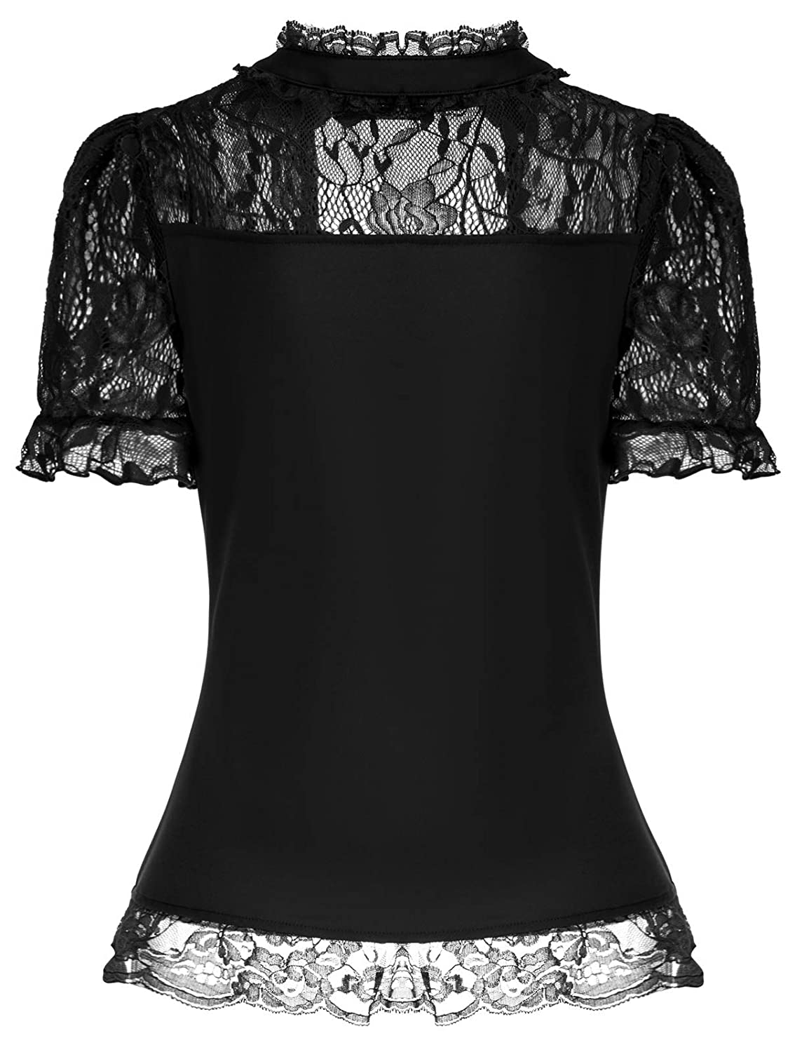 Features: Women victorian vintage top decoration buttons detail in the front, lace sheer sleeve, short puff sleeve and lace hem,slimming design