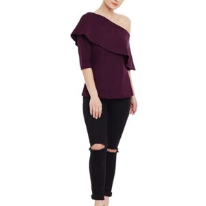 Miss Chase Women’s Black One Shoulder Half Sleeved Solid Layered Top