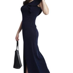 Miss Chase Women’s Navy Blue Solid One Shoulder Sleeveless Ruffled Slit Maxi Dress