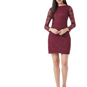 Miss Chase Women’s Maroon Round Neck Full Sleeves Lace Bodycon Mini Dress