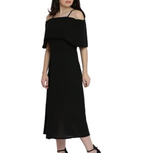 • Miss Chase Women's Black One Shoulder Half Sleeved Solid Layered Top