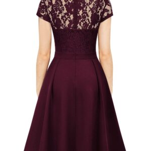 MISSMAY Women’s Vintage Floral Lace Long Sleeve V Neck Cocktail Formal Swing Dress